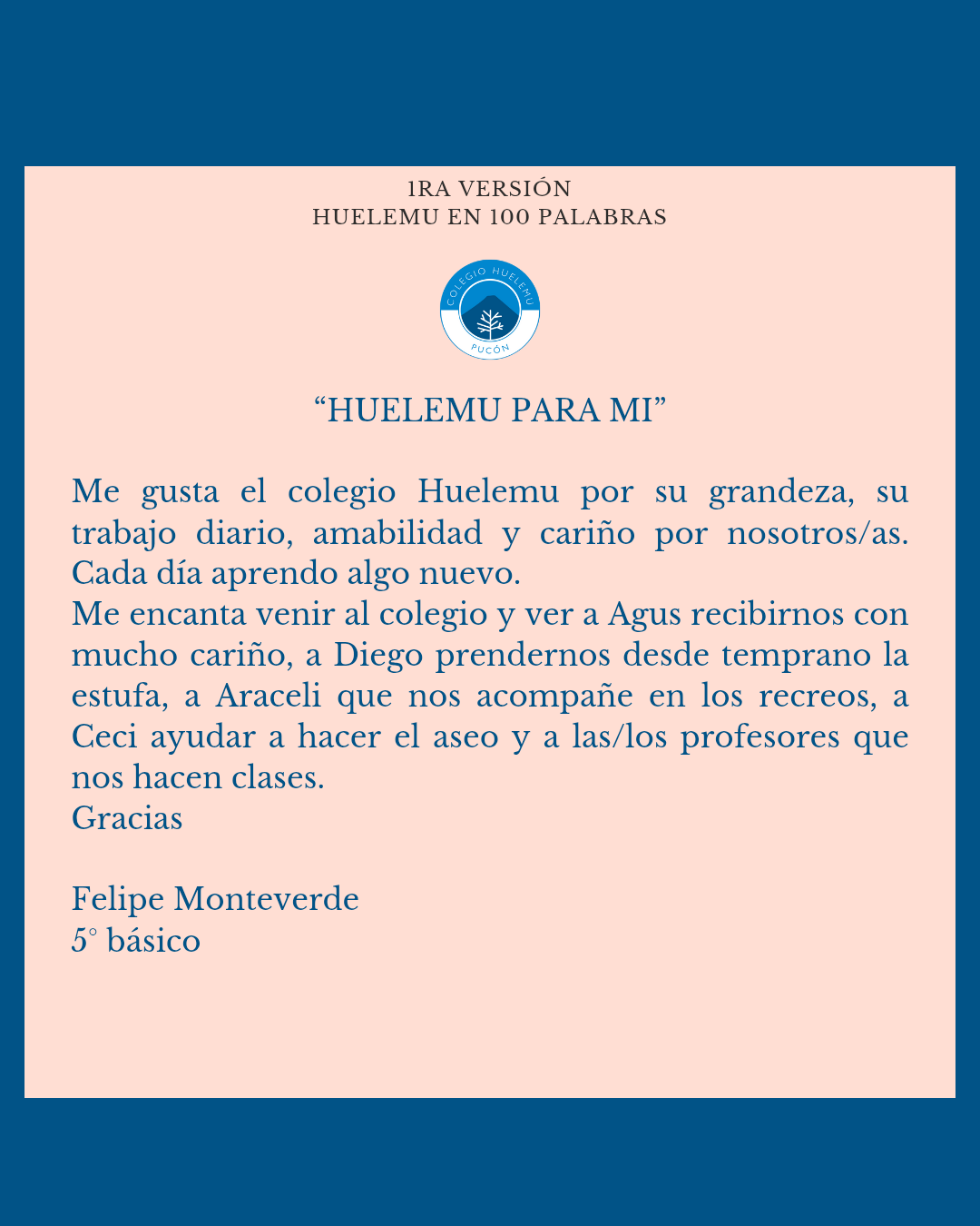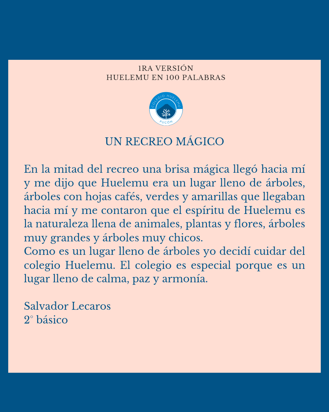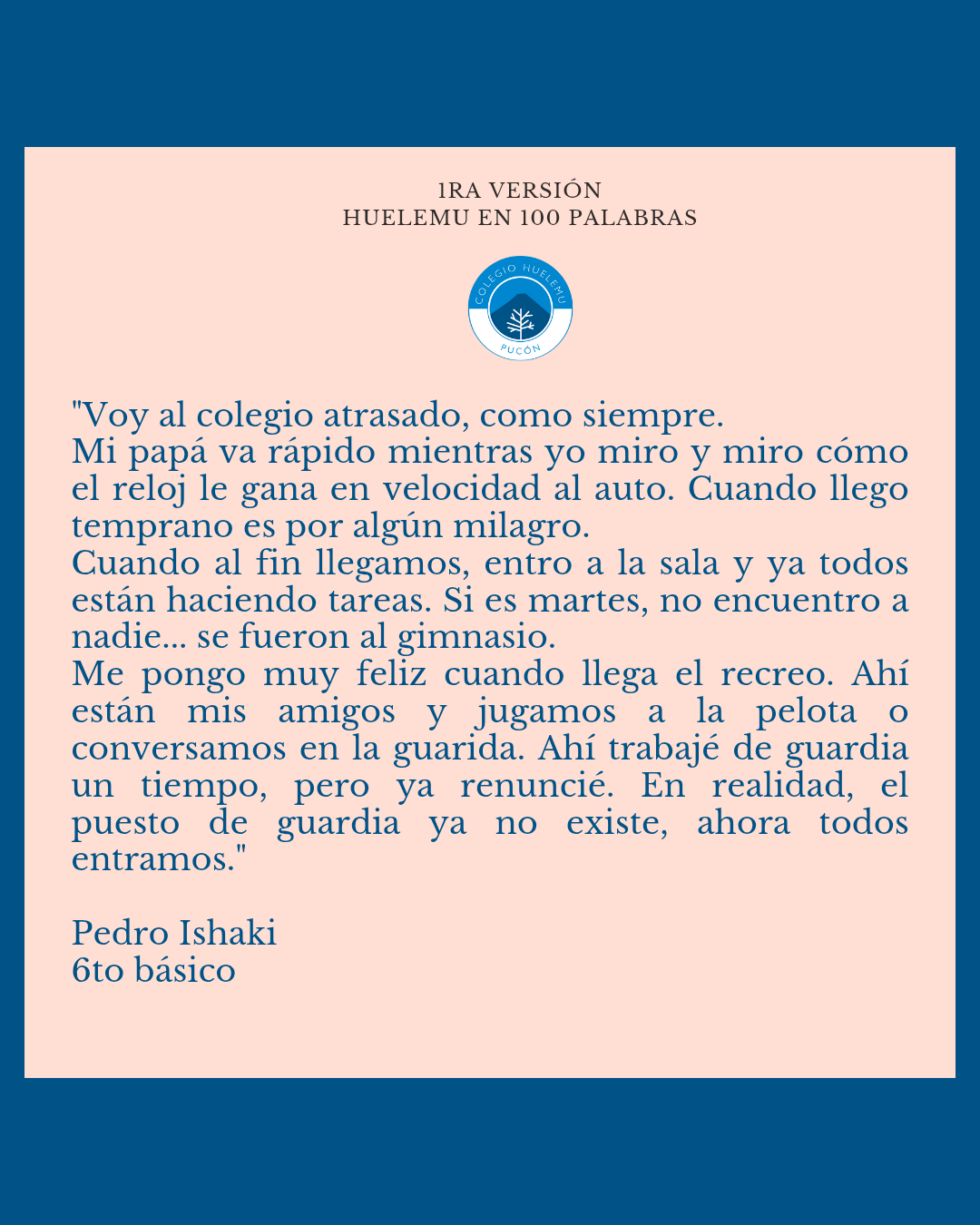 Felicitamos a Pedro Ishaki de 6to, Salvador Lecaros de 2do, Diego López y a nuestros estudiantes y apoderadas/os que se entusiasmaron enviando sus textos.