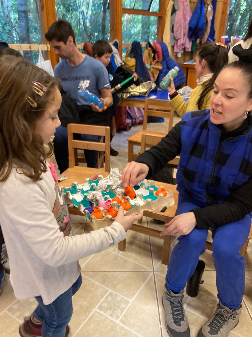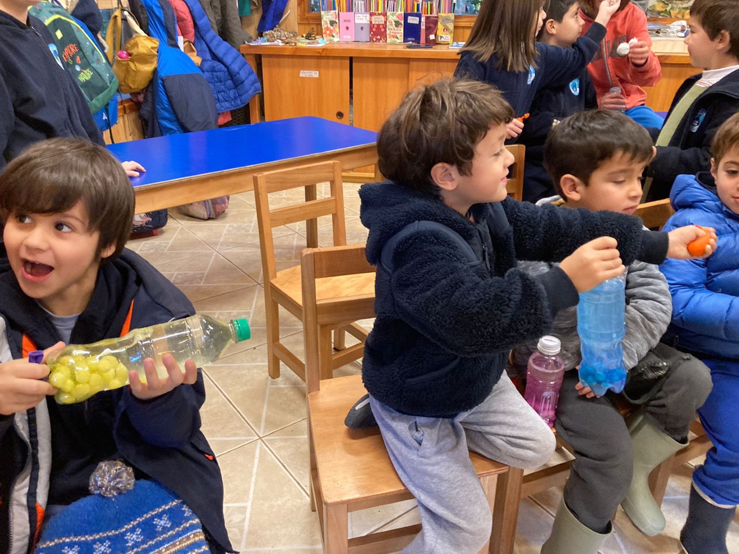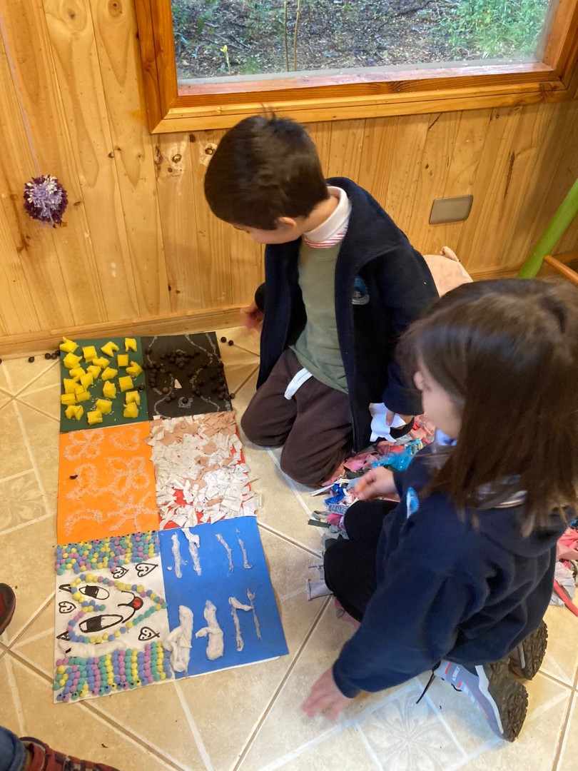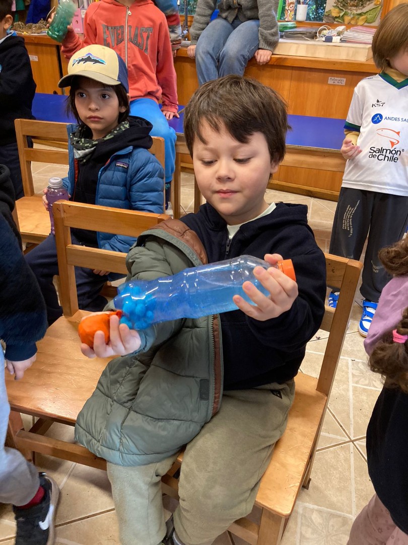 Por medio de un trabajo en parejas y tríos confeccionaron, a partir de algunos materiales reciclados, distintos objetos que favorecen la regulación emocional por medio de los sentidos, como por ejemplo, botellitas de la calma, pelotitas apretables, sonajeros, alfombra sensorial, bolsitas aromáticas.