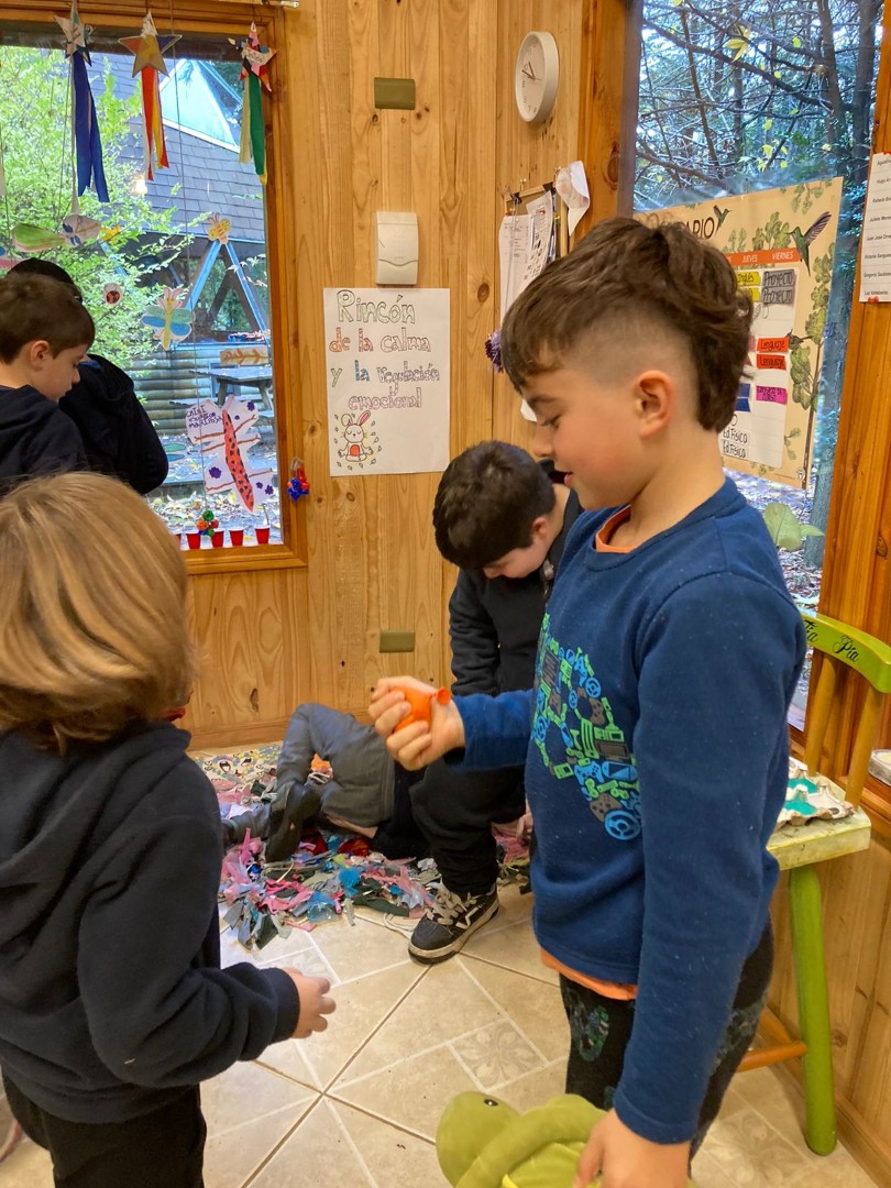 Ahora hacemos uso del espacio día a día en el aula, y se ha convertido en una experiencia que les permite desarrollar la conciencia y regulación emocional que es un área muy importante que se encuentra presente en los pilares del colegio.